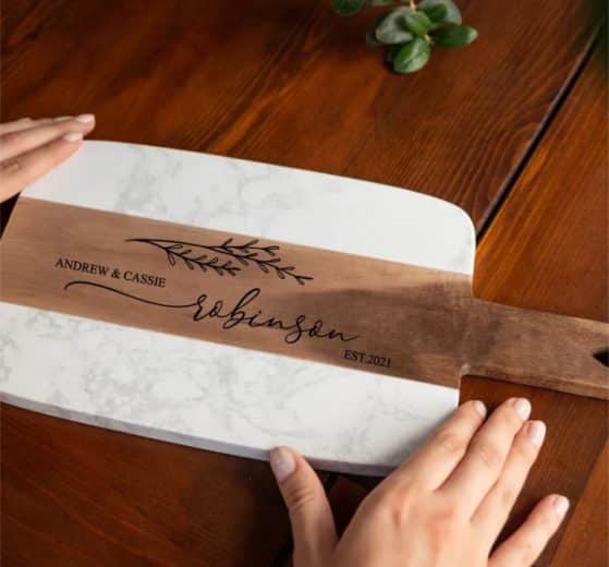 Elevate your hosting game with this stunning board made from high-quality marble and acacia wood.