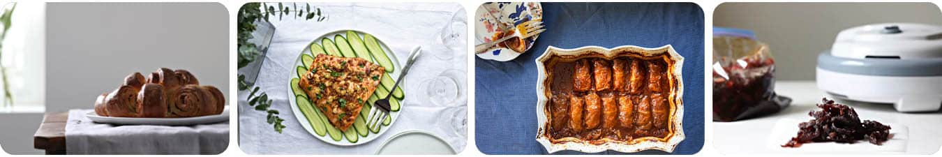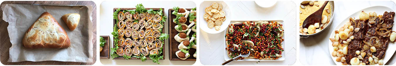 Note that we didn’t include dessert in these menus (perhaps at least that will come from your mishloach manos!), but if you do need a dessert, there’s a roundup of some refreshing ideas that will work included as our last menu.