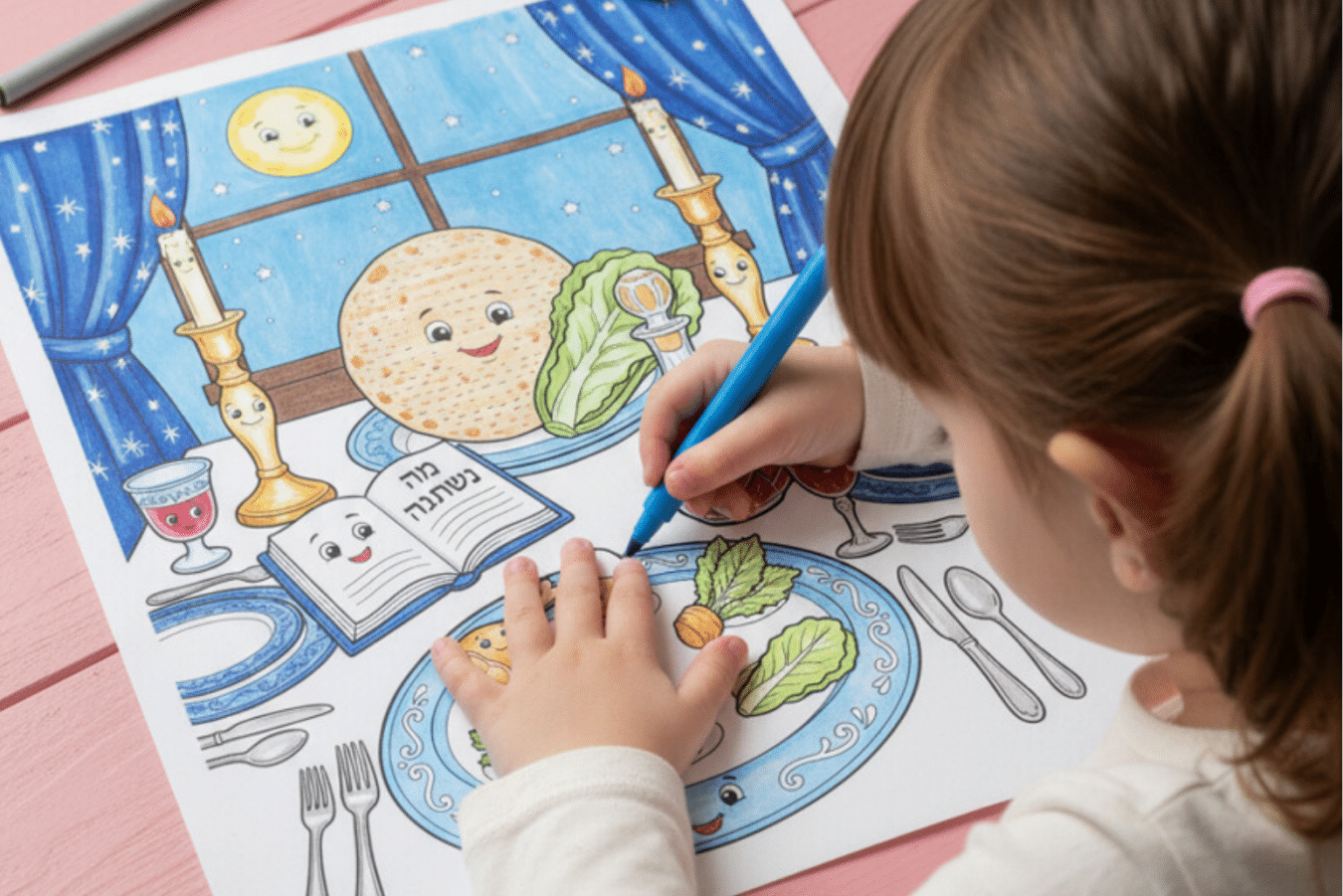 Keep the little ones busy with this fun and adorable Pesach coloring page.
