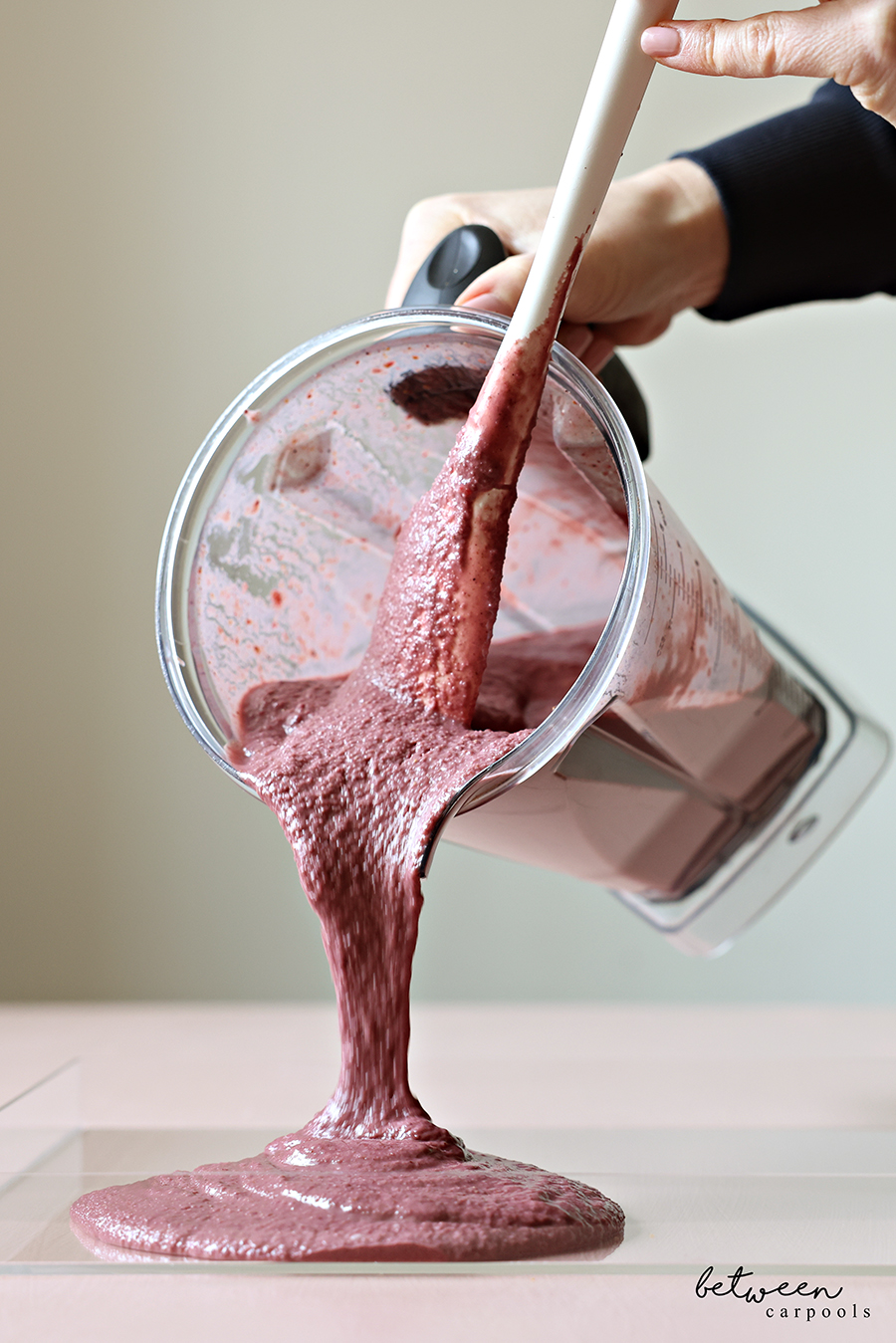 - Once smooth, it's time to pour the açaí onto the board. Spread evenly and freeze.
