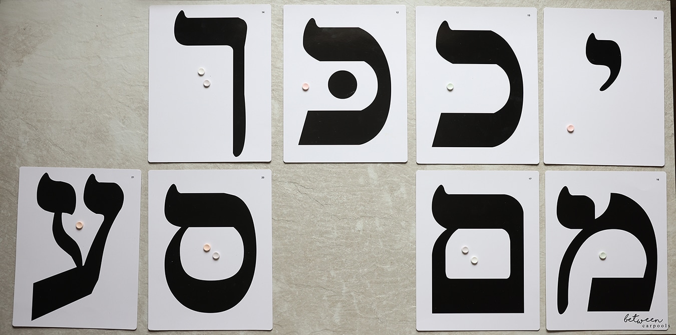 No problem! We’d make it fun! I took her to a local Judaica store and stocked up on every Aleph Bais toy imaginable.