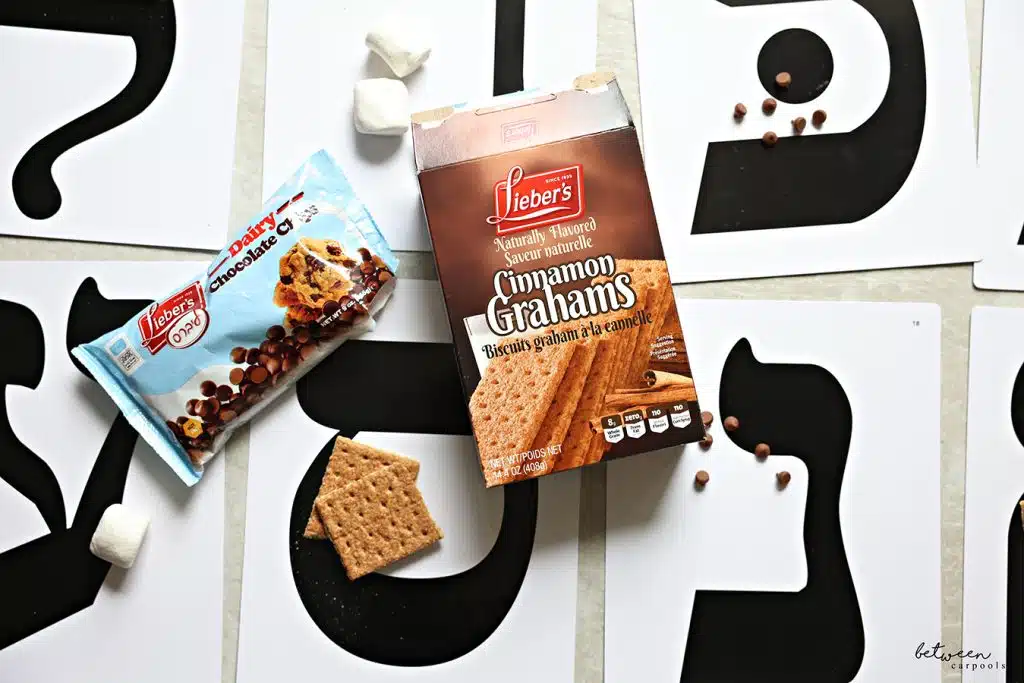 It happens to be that, while I was picking up the ingredients to make these S’Mores, I discovered Lieber’s Dairy Chocolate Chips and they became our new favorite. I hadn’t known chalav Yisrael milk chocolate chips existed. Since Lieber’s was thrilled when our reader recommended using Lieber’s Duck Sauce for this Chicken Popper recipe, we asked them to sponsor this post so I could honestly share how much we love the chocolate chips. Yes, the fact that they’re dairy has a lot to do with it, but they’re sooo much better than any pareve ones. If you don’t need your S’Mores (or other baked good) to be pareve, don’t get regular chocolate chips, get these! And, yes, their Sour Winkies are better than regular winkies and we used those also when playing this game.