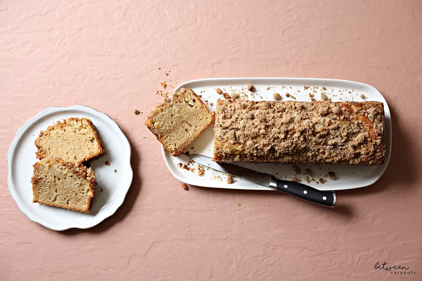 If you’re baking this in a loaf pan like this (vs. a 9×13 or bundt), you won’t need all of the crumbs.