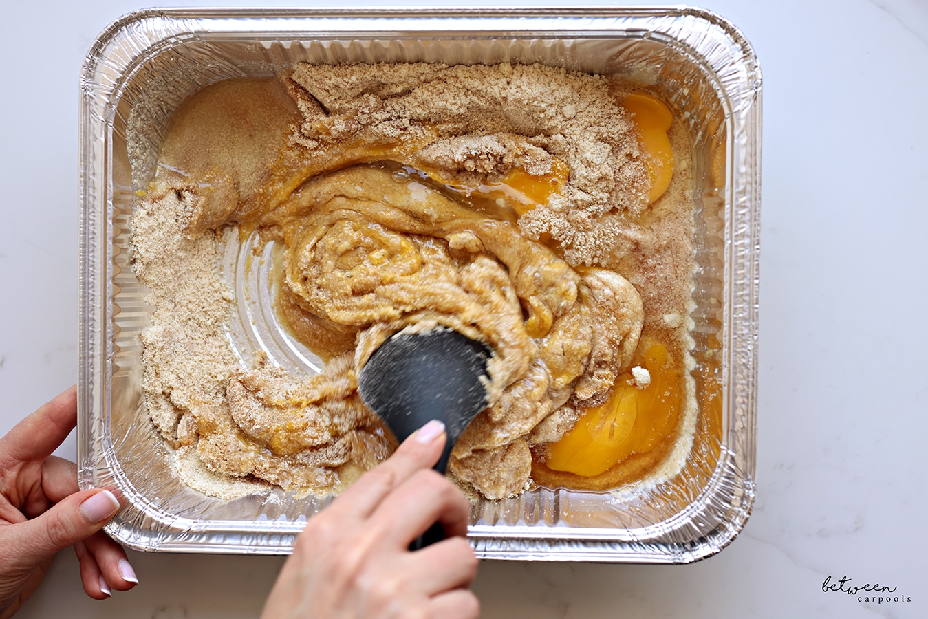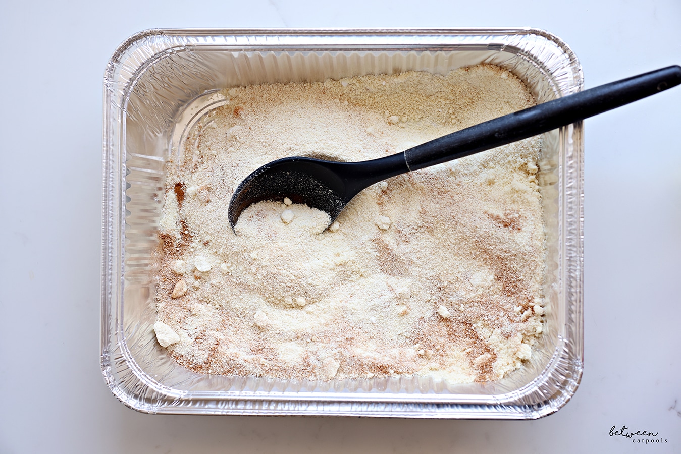 - In a 9x13 pan (or in a bowl if you prefer), combine almond flour, salt, baking soda, and cinnamon.
