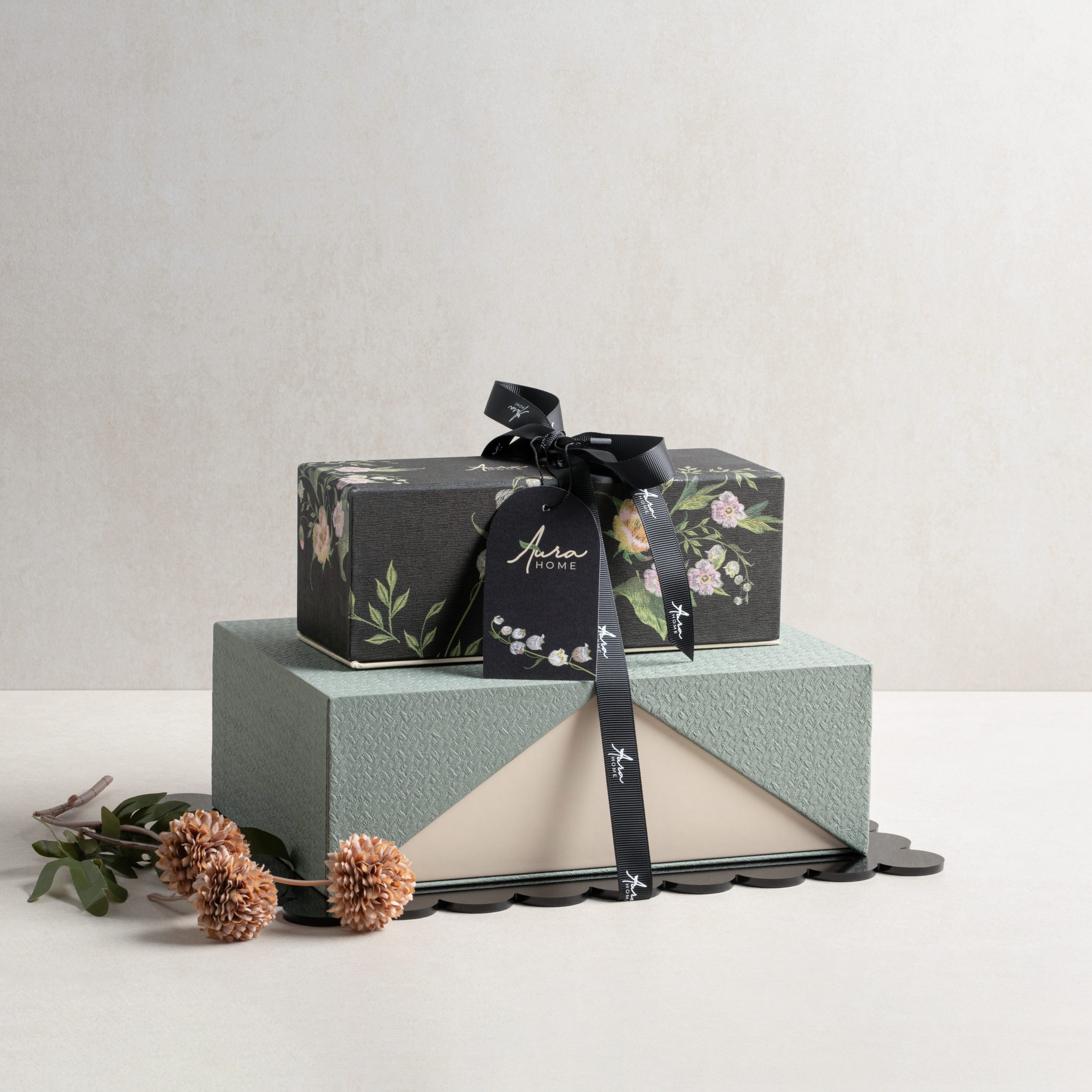 Aura Home makes it so easy. The packages are beautiful and ready for you–simply choose your favorite and send! And, of course, there’s options available at all price ranges.