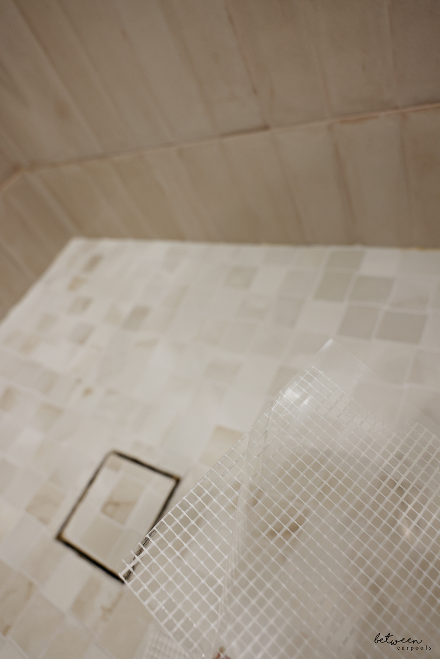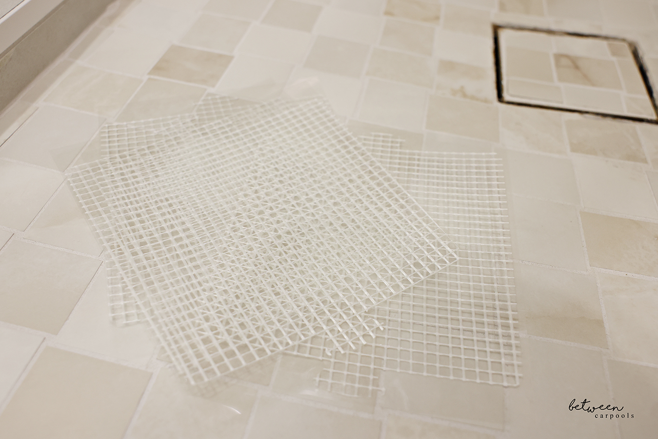 These adhesive drain hair catchers are also available in a linear style. You can just cut them to the size of your linear drain. I’ve only ever seen them in gray, though, so if you have light colored tiles in your shower, they don’t blend in very well.