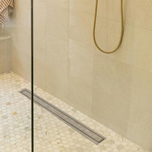 These adhesive drain hair catchers are also available in a linear style. You can just cut them to the size of your linear drain. I’ve only ever seen them in gray, though, so if you have light colored tiles in your shower, they don’t blend in very well.