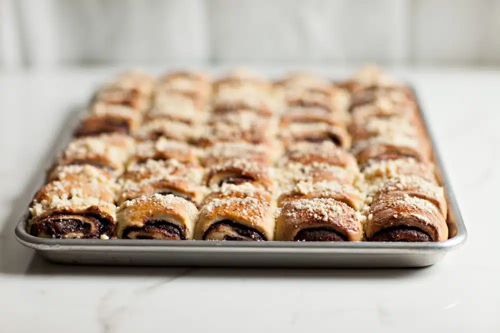 - To assemble, divide dough into 4 equals parts. Roll out each part on a floured surface into an approximately 6-inch by 18-inch rectangle. Spread filling evenly over doughs and roll each up into a long strip.
