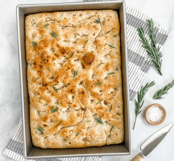 I had a similar problem when I was regularly making sourdough focaccia in a 9×13 pan (specifically this USA Pan which is highly recommended for focaccia) but we didn’t need that much bread each time.