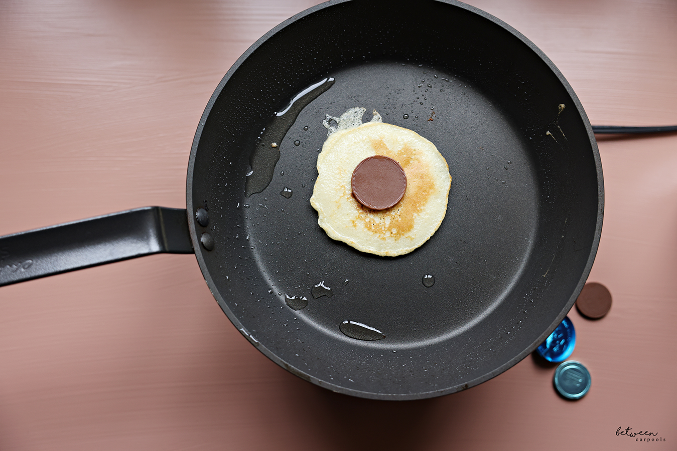 The trick is to not add the gelt until after you’ve flipped the pancake. If you add it to the first side, then it will just melt too much and be unrecognizable.