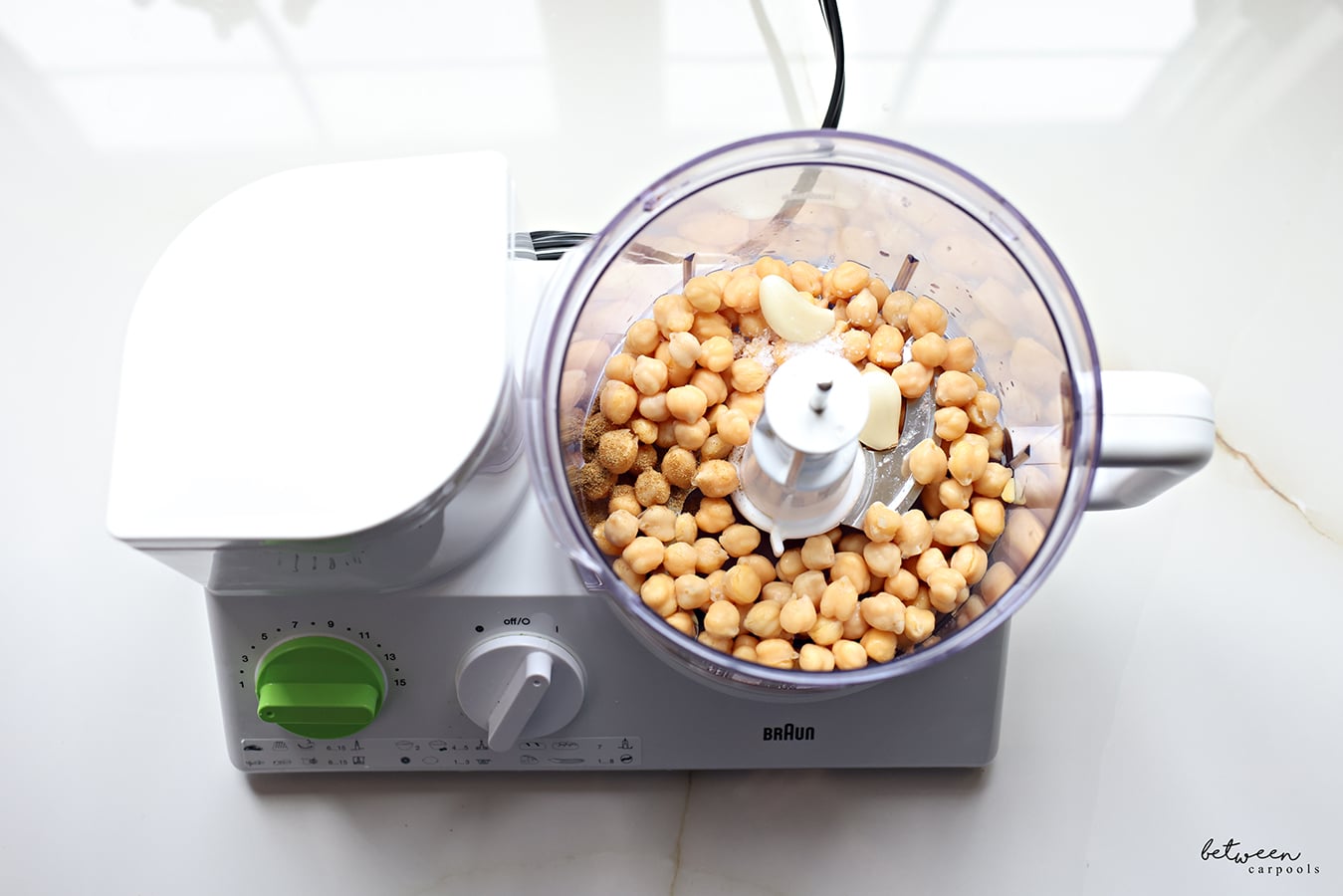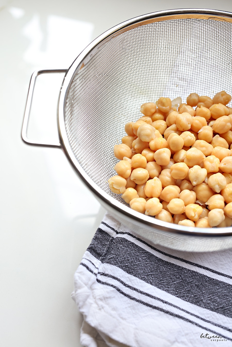 And she was shocked. She thought that to make chummus she would definitely need to soak dried chickpeas (and then peel for the best texture). While it’s true that most cookbooks tell you that, for the practical busy women, using a can of chickpeas is more than perfectly acceptable to achieve delicious homemade chummus! This is especially so if the chickpeas in the can are large and soft (like the Goya brand we used).