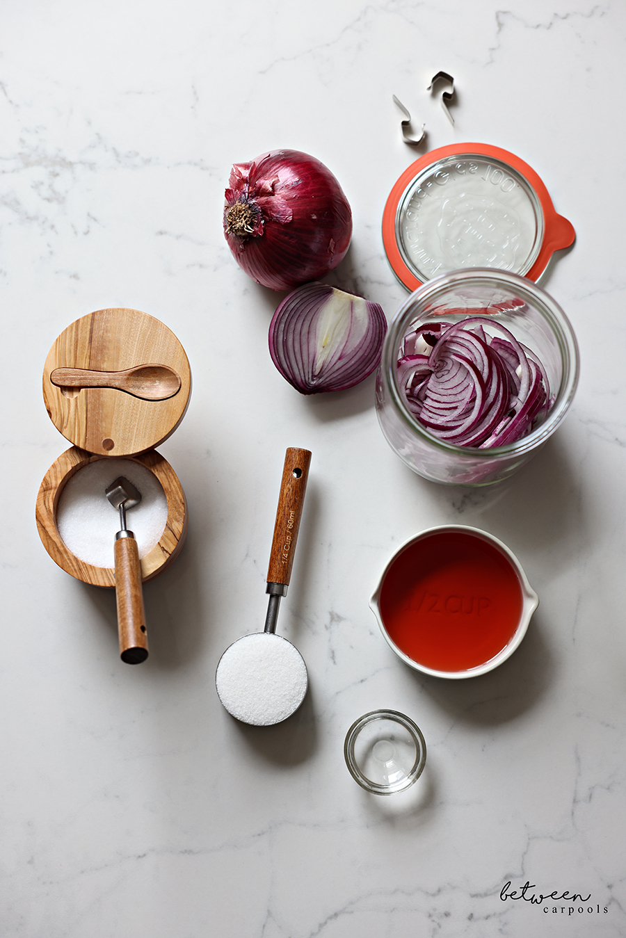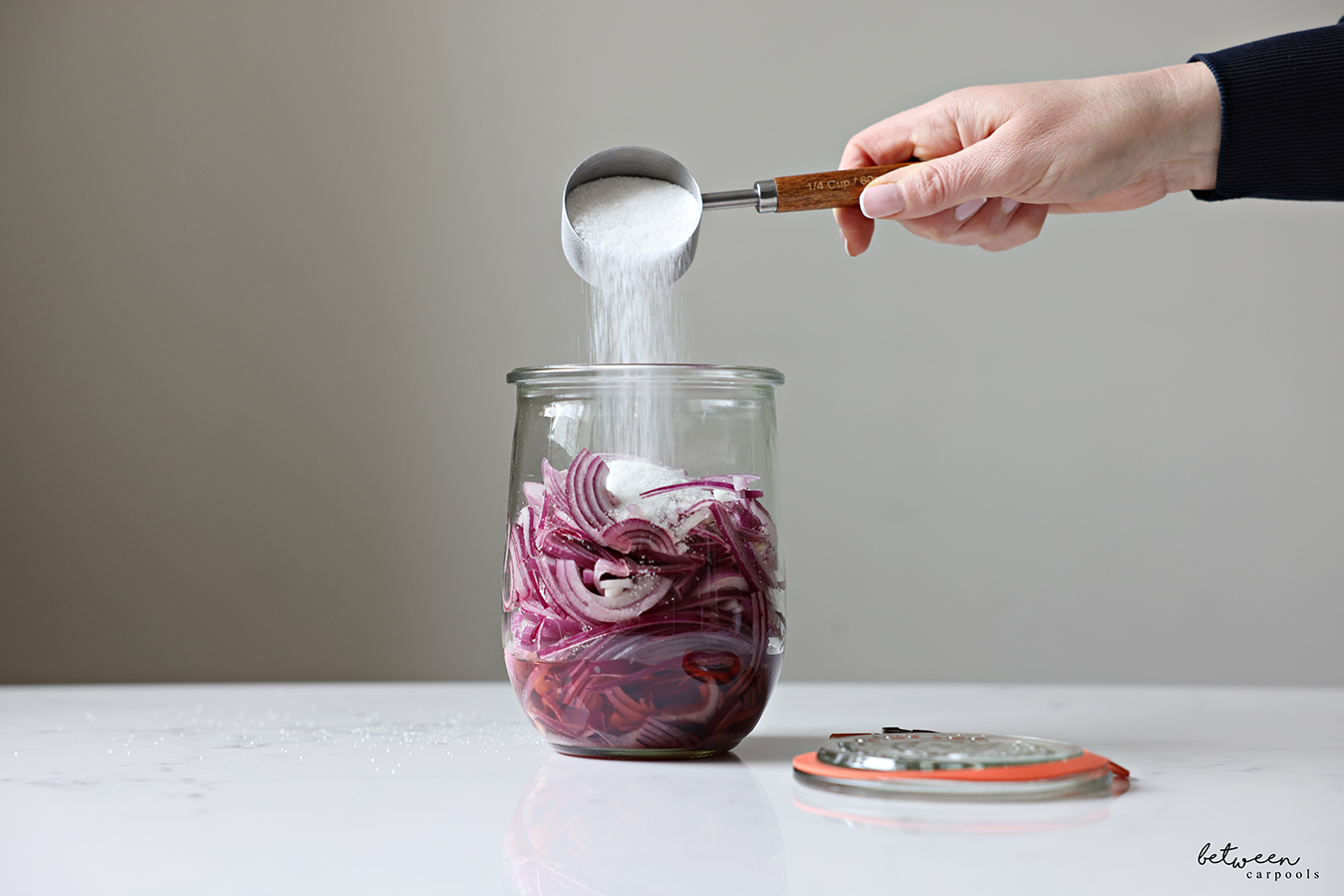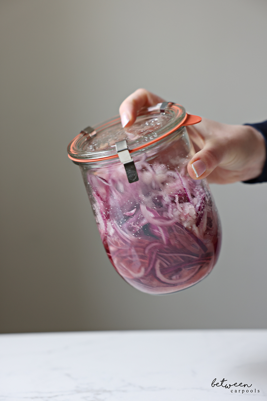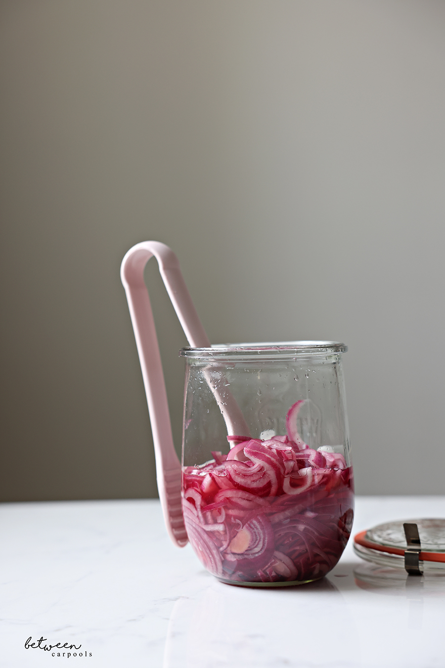 These pickles have been a staple on Between Carpools, ever since we first featured them in Dinner Done. Originally shared by Fleishig Magazine editor Shifra Klein, we used them to top the Dinner Done Delmonico Tacos.
