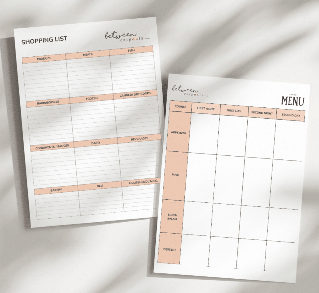 This shopping list download is also helpful. Fill in your menu and then add in the ingredients you need into the shopping list download…all in the right category so you don’t have to run randomly all over the store. It’s so helpful when you organize your shopping list this way.