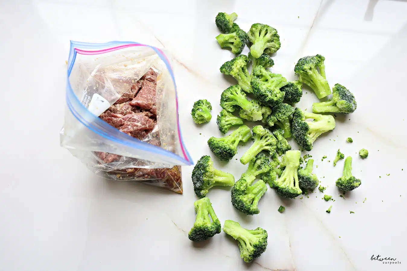 There’s no major story here. One of my kids requested beef and broccoli for dinner. But to make this a useful recipe for all of you, I wanted this beef and broccoli to be one that I could mostly prep ahead, and then take little time to cook once I’m ready to serve it fresh. The ingredients are super simple too!