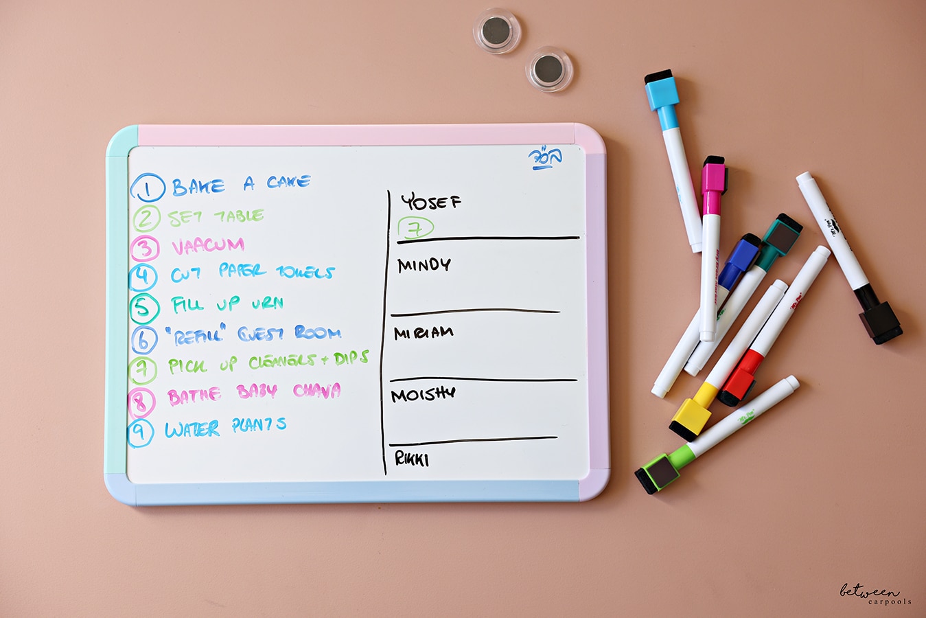You do not need a dry erase board. Paper is just fine. Hang it on the fridge and everyone will know what’s expected.