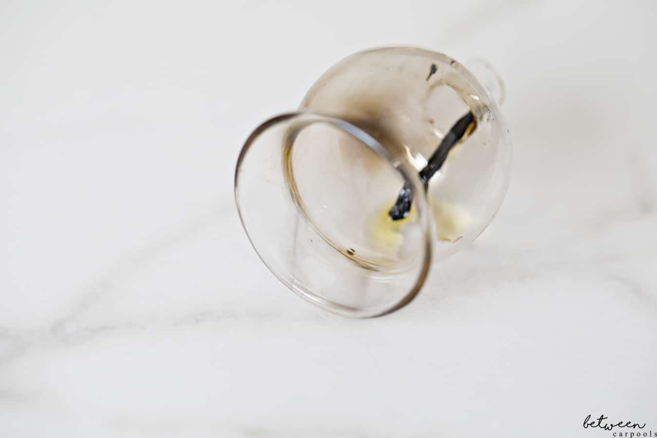 Once the ammonia did its job you can either place the glasses in the dishwasher (top rack) or wash with hot soapy water.