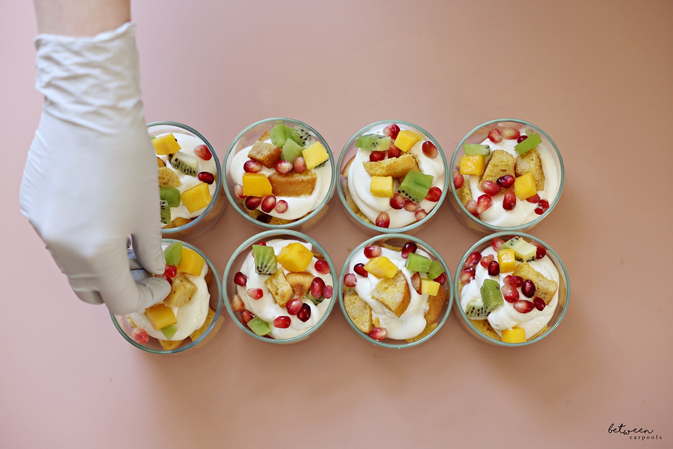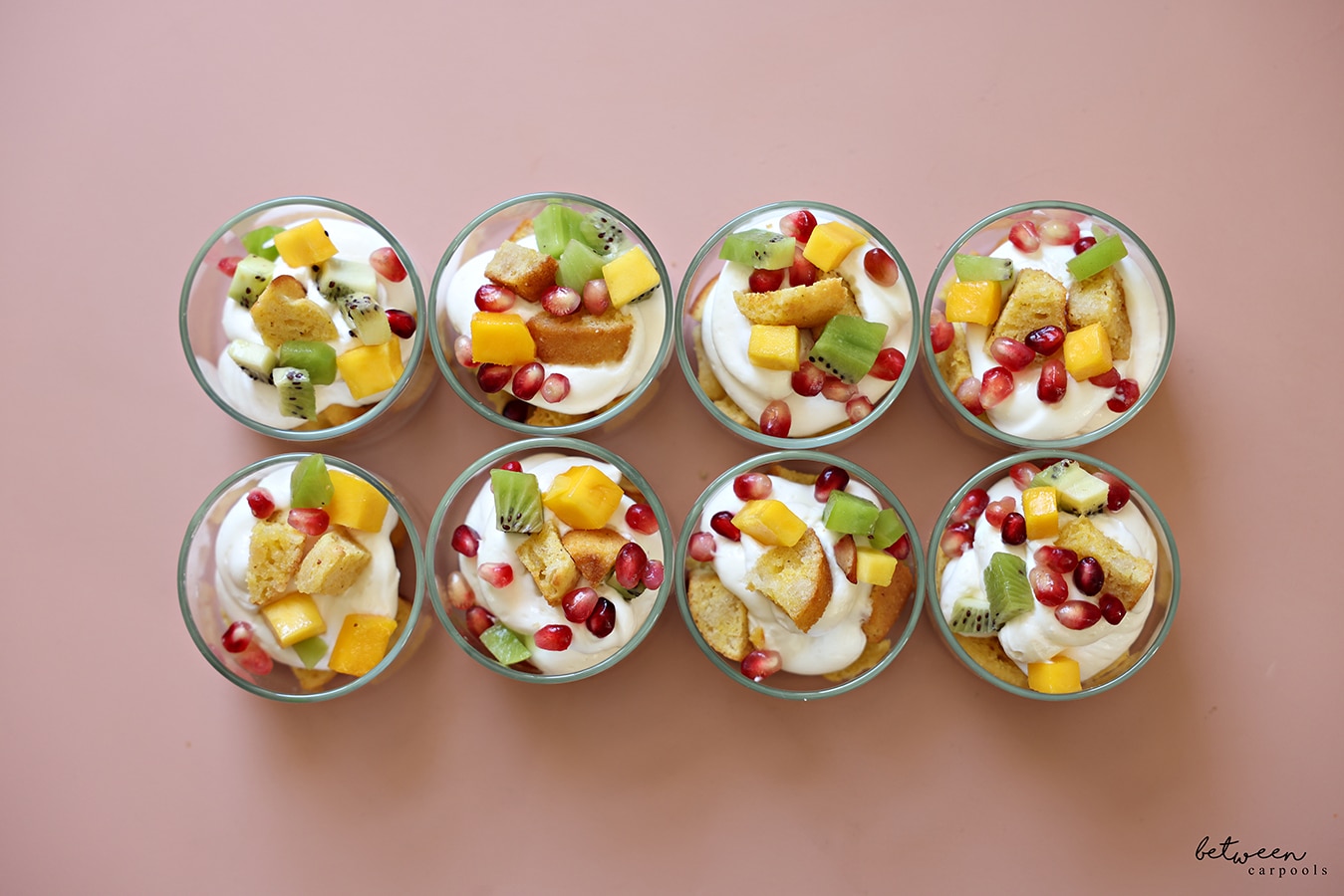 The problem is that the cute little cubes of corn muffin may or may not get eaten off the tray and you might not have any left to make this dessert.