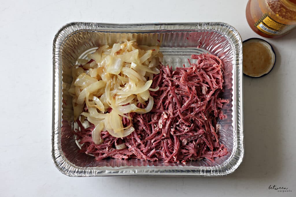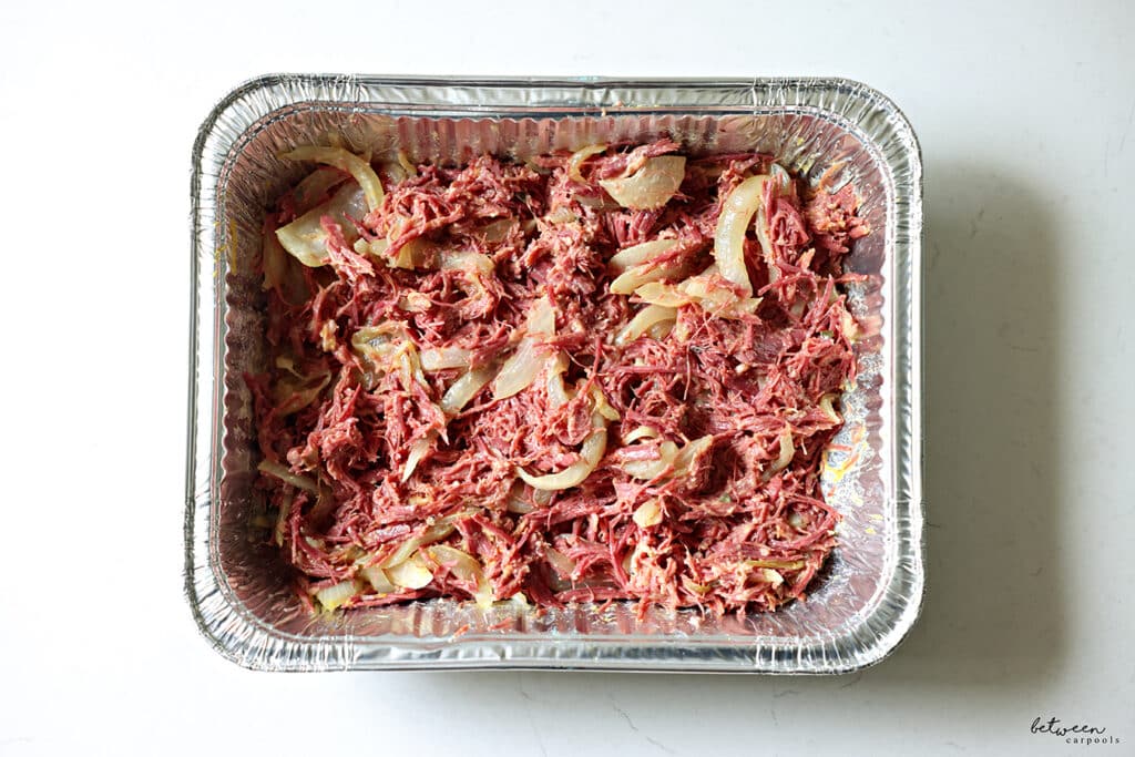 This is our Corned Beef after we’ve already shredded it and sautéed some onions.