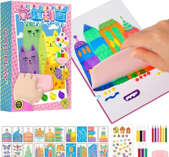 I really recommend shrinky dinks. But I would suggest buying the sheets without pre-printed designs and then you can print out things for your kids to trace that they chose. They can also trace illustrations/characters from their favorite books, brand logos from packages and you can also create custom traceable images using AI, with names and anything you can think of. I would also suggest jewelry making supplies because shrinky dinks can be used for way more than keychains. You can hot glue them to earring posts, create pendants. We really enjoy shrinky dinks!