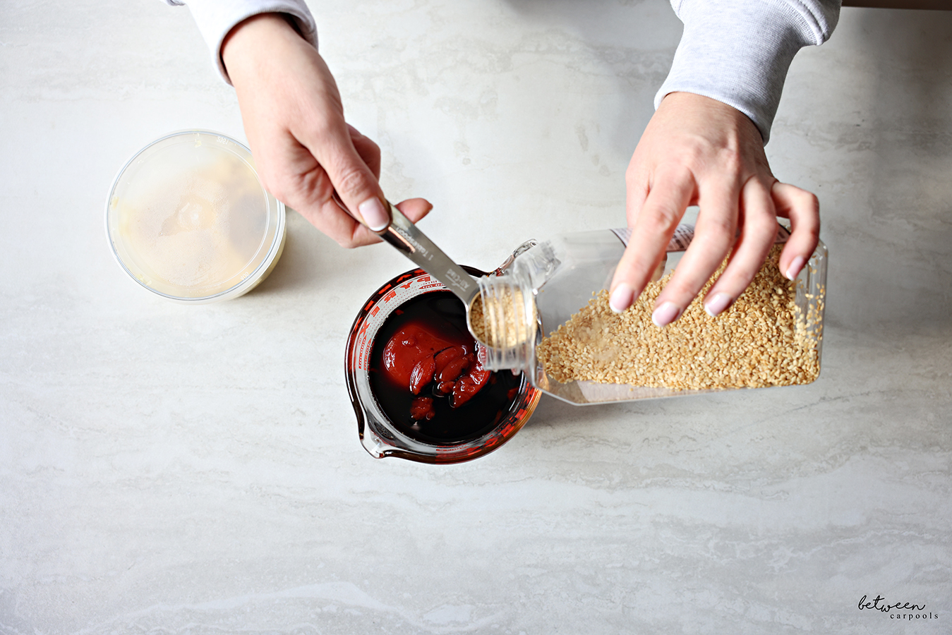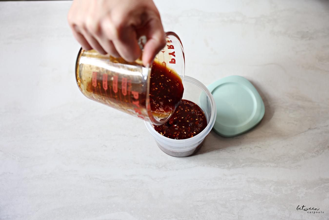 We combined all the sauce ingredients in a container the night before so it truly only needs a few seconds of morning prep.