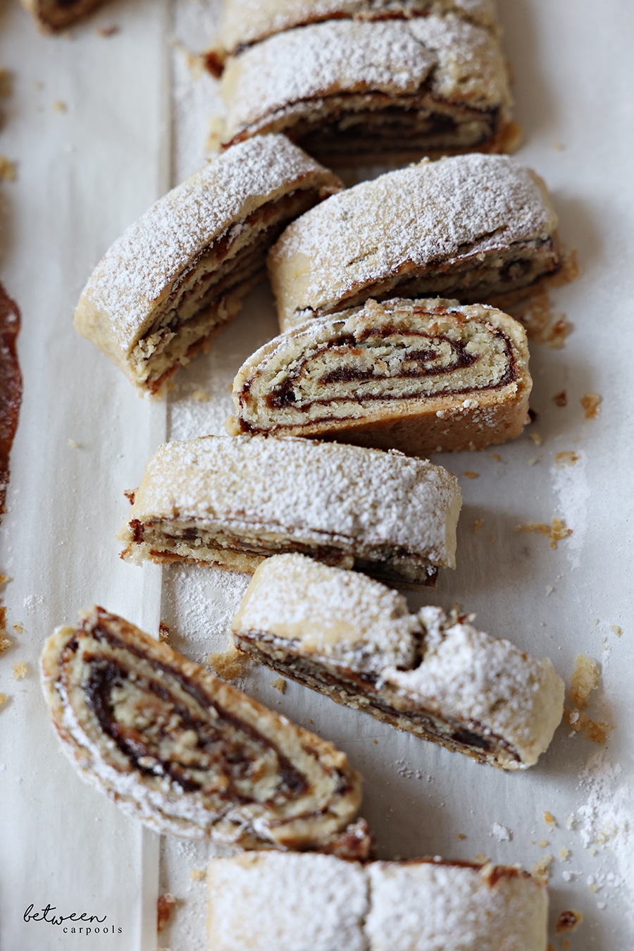 - Slice through each cut to make cookies and sprinkle with a generous amount of confectioners' sugar. Freezes well. Best if stored in freezer; defrost as needed .