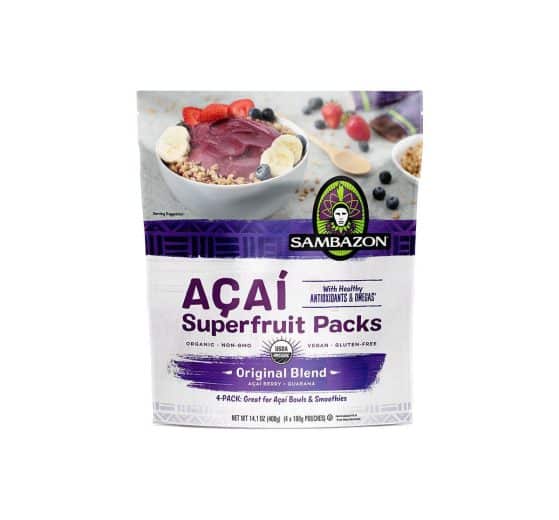 It all started when I spotted these kosher-certified Frozen Acai Packets at Wegmans. Then, Esti spotted a 12 pack (even better) at Costco.