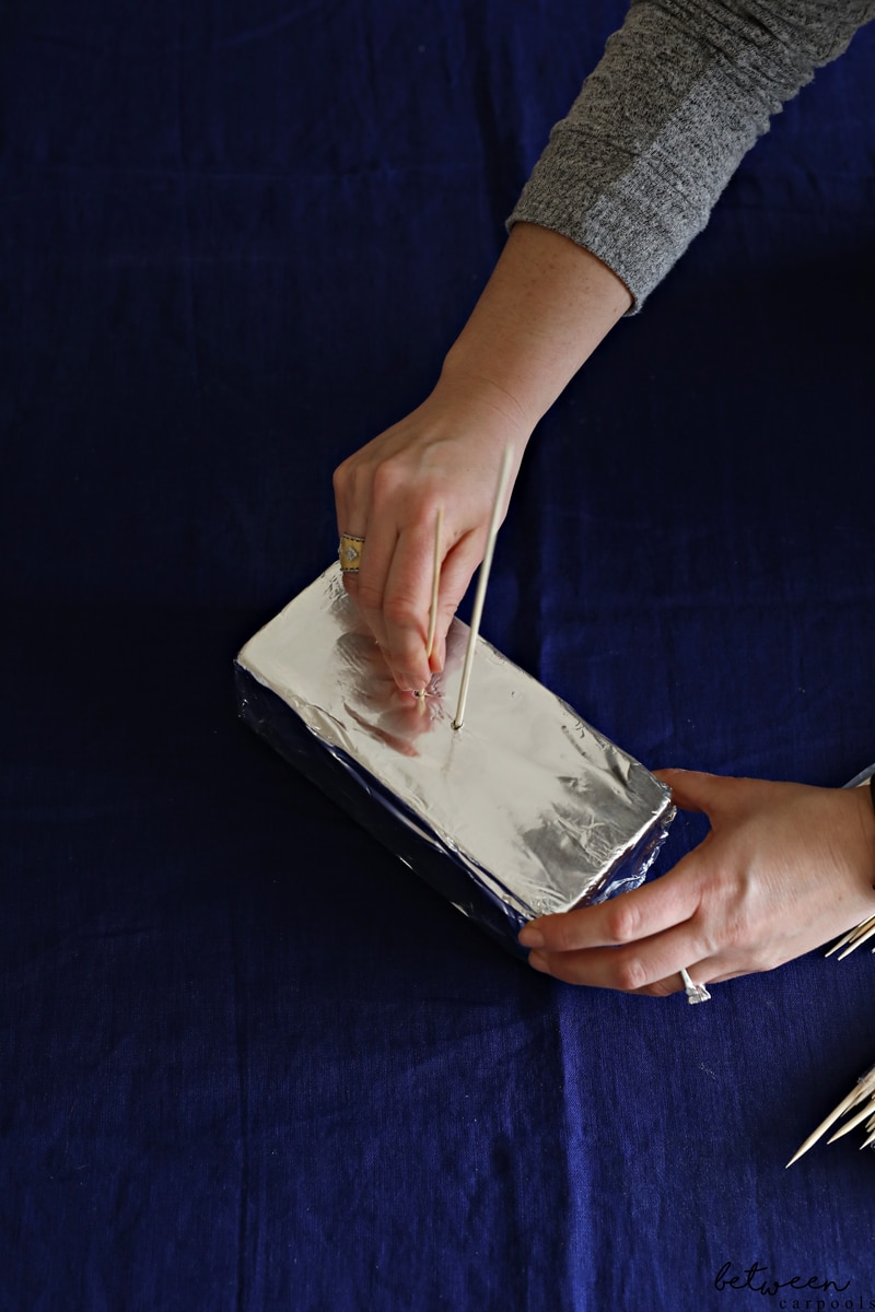 - Wooden skewers, 8 medium-sized and 1 tall one