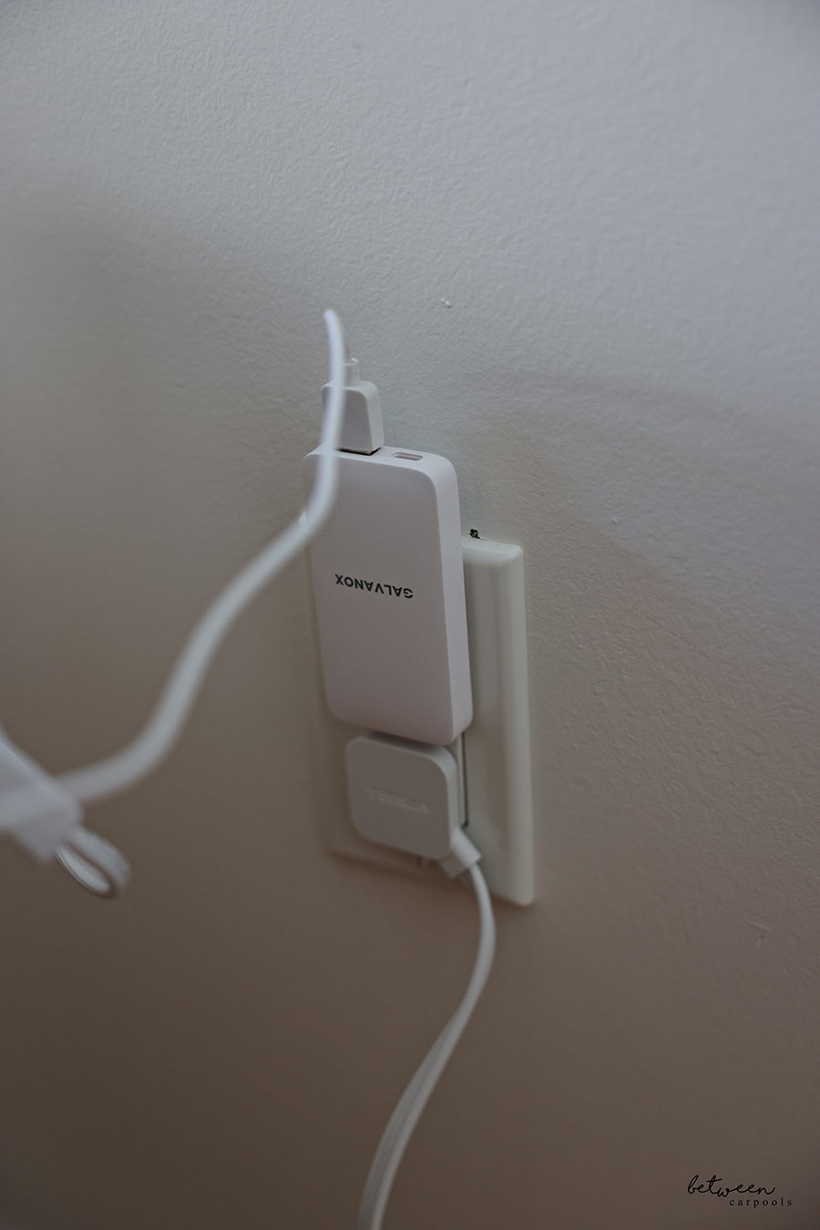 Do you have an outlet behind your bed or nightstand that needs to power too many wires? Not enough room for all of that? Let’s get it organized!