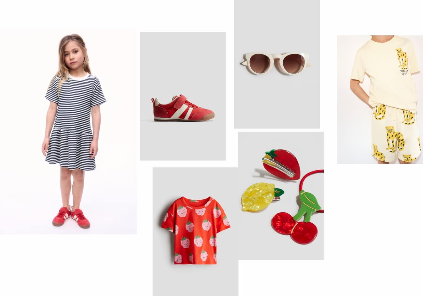Striped Dress – Red Sneakers – Sunglasses – Red Raspberry Tee – Hair Accessories – Tiger Boy’s Set