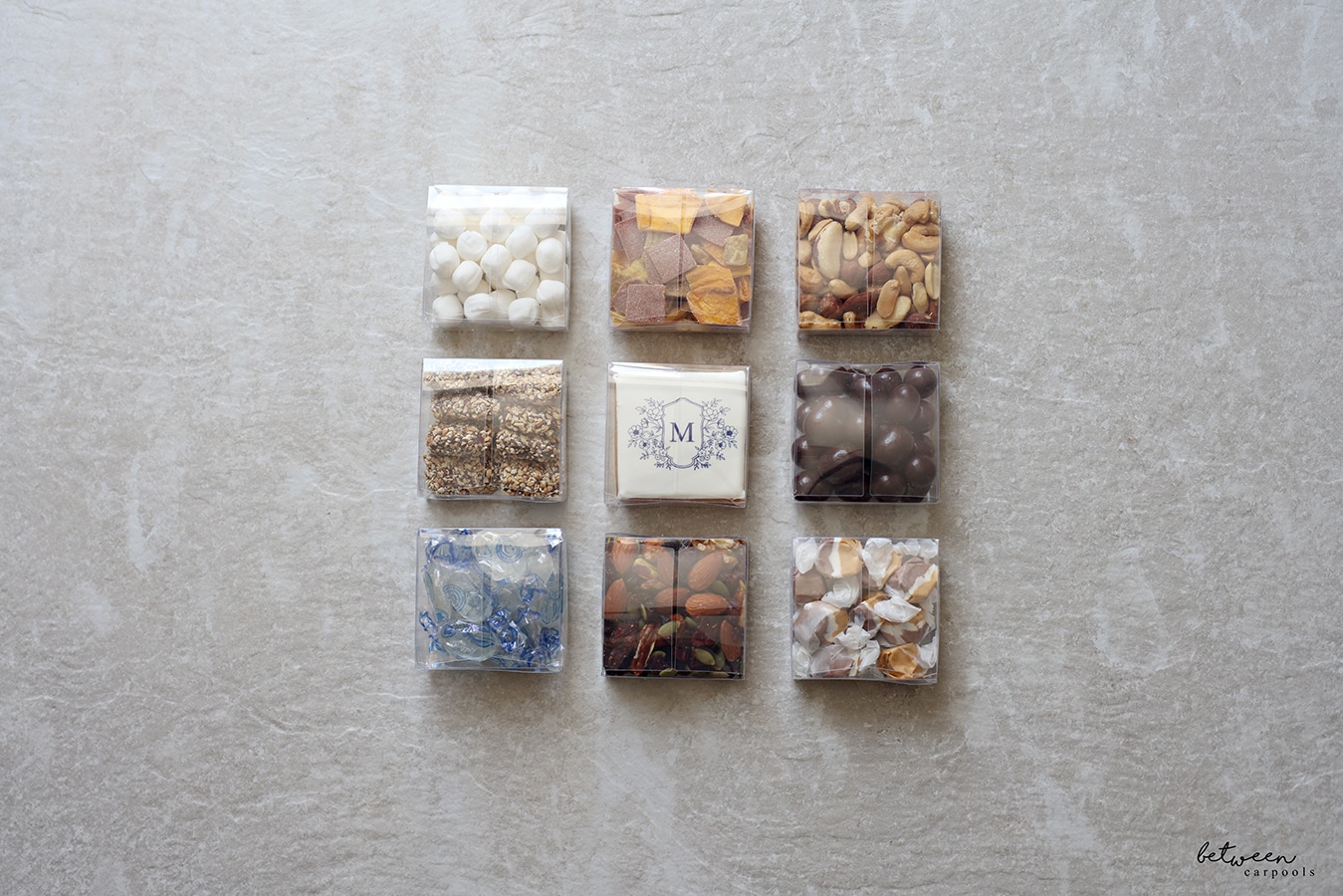 C – Candy will be enjoyed if your guests are coming with children. Saltwater taffies are a great option as they are classy looking and enjoyed by kids – and by those young at heart!