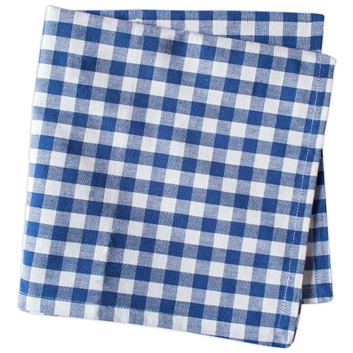 Our subtle pop of colors comes in through the pillows and the runner, which are from the Bullseye Playground at Target (a spot for bargains) and some blue gingham napkins (these napkins are made by Sferra, but they are an old style that is no longer available).