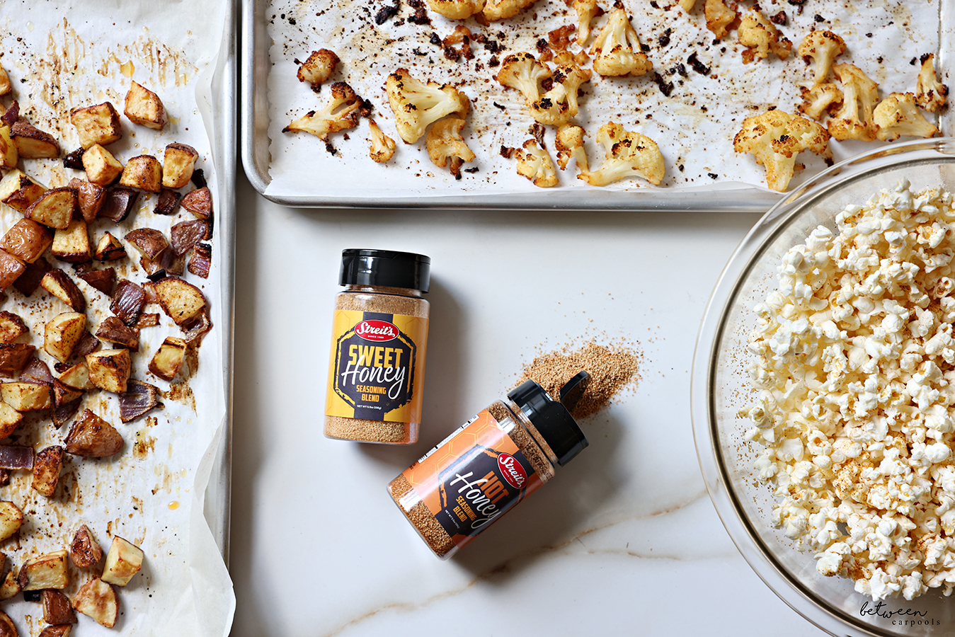 Our favorite way to enjoy the Hot Honey Seasoning Blend, though, was the easiest of all. We added it to freshly popped popcorn. First, spray the popcorn with nonstick cooking spray so that the seasoning sticks.