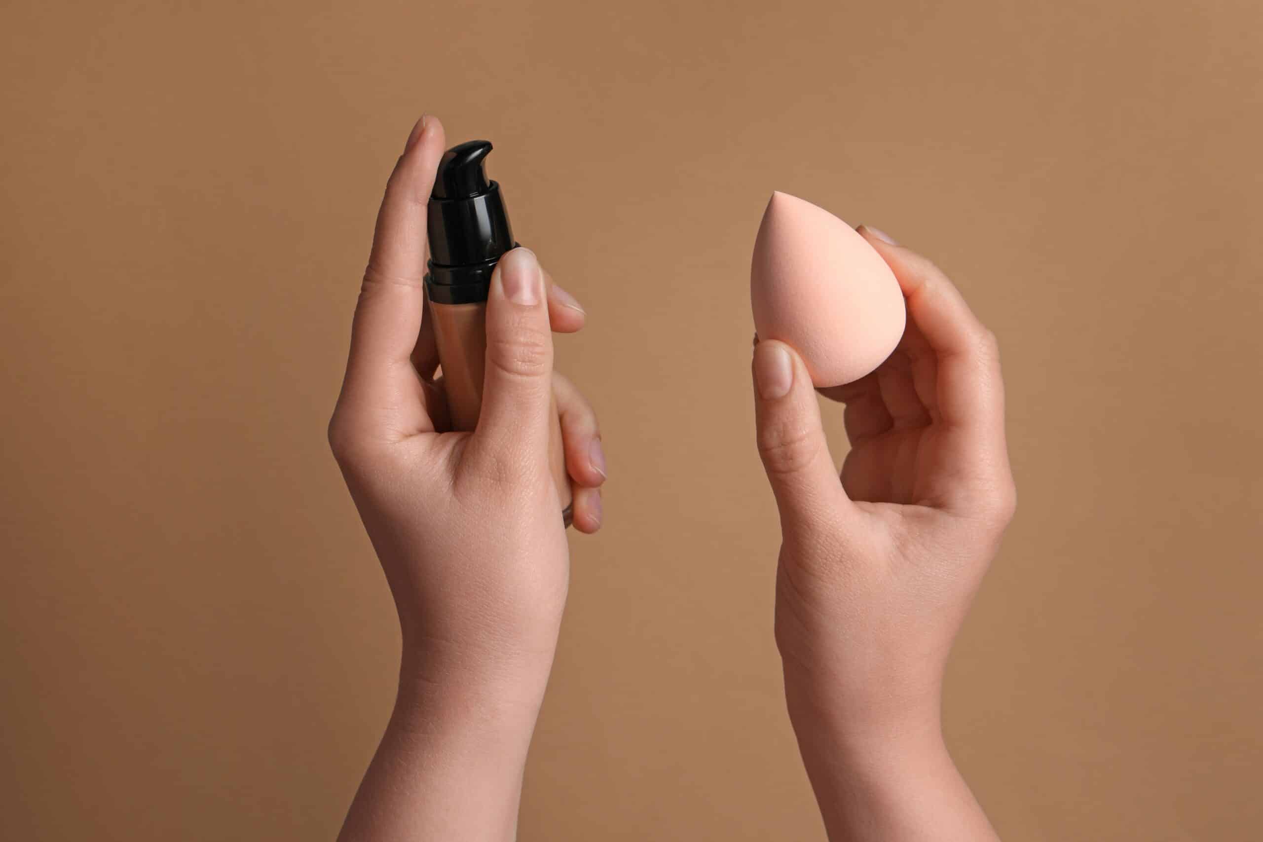 A concealer with a full-coverage formula can come in handy for hiding blemishes and under-eye darkness. Apply a dot in areas that need more coverage and blend it out with the sponge.