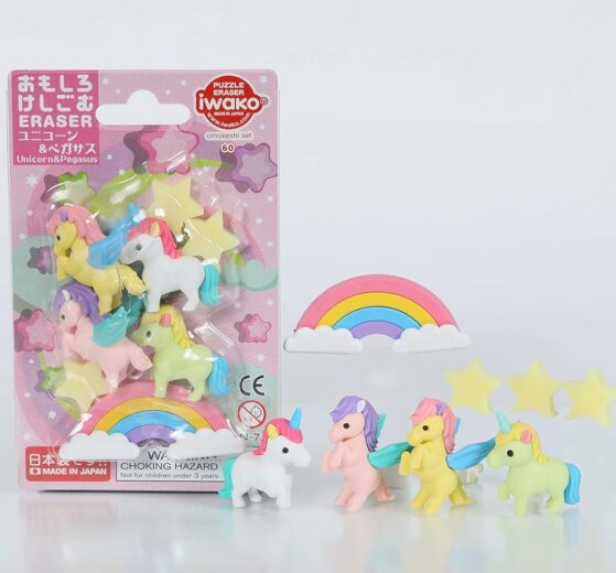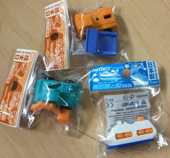 When you want more unique erasers, you can get Japanese Iwako eraser sets (some cute ones are highlighted below) also on Amazon, like this cute School Accessory Set. Can you handle the little stapler, tape dispenser, and pencil sharpener?