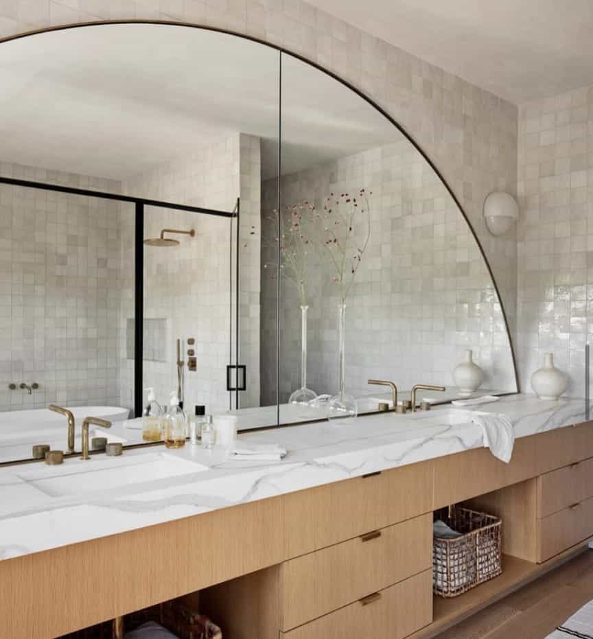 Last but certainly not least, I knew I wanted an arched mirror from the second I saw the mirror in my last inspo pic. I wanted a more traditional arch than the one I saw to pair with my sconces and also wanted a contrasting element to all the gold I had going on. This mirror from Wayfair was my final choice.