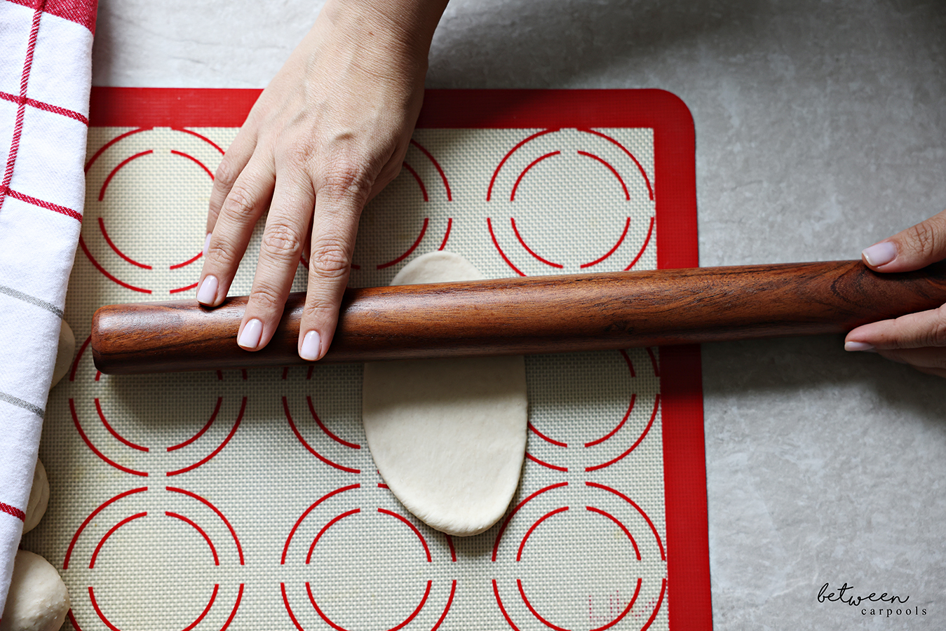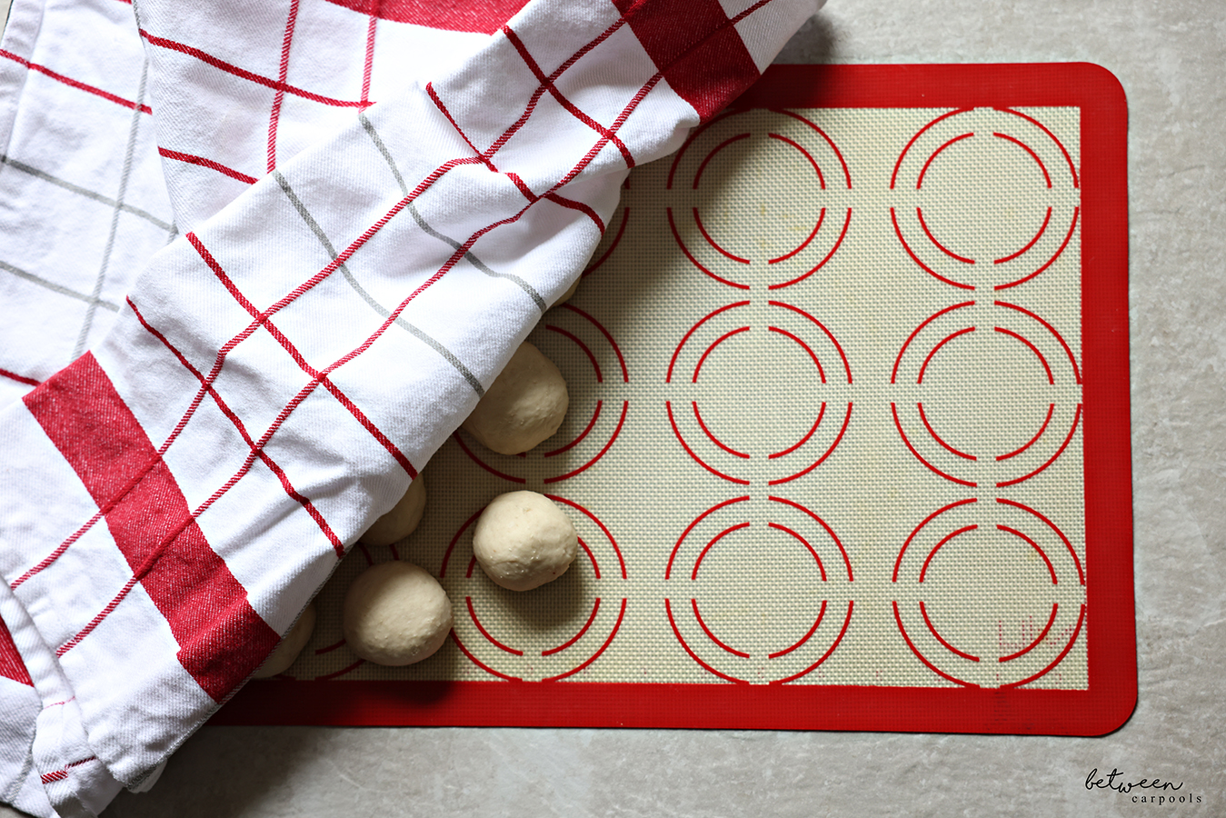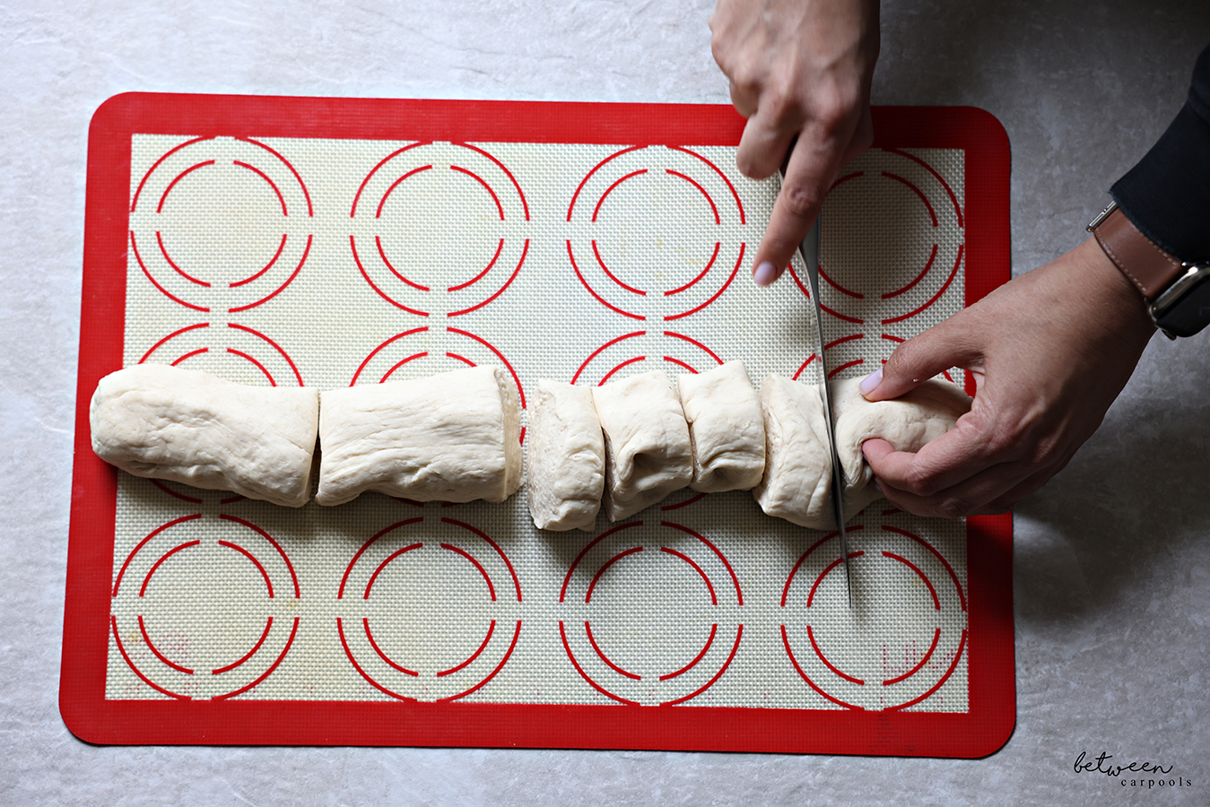 Let the dough rise for just 20 minutes or so before forming the buns. After kneading it well, form the dough into a log and cut into 12 evenly sized pieces.