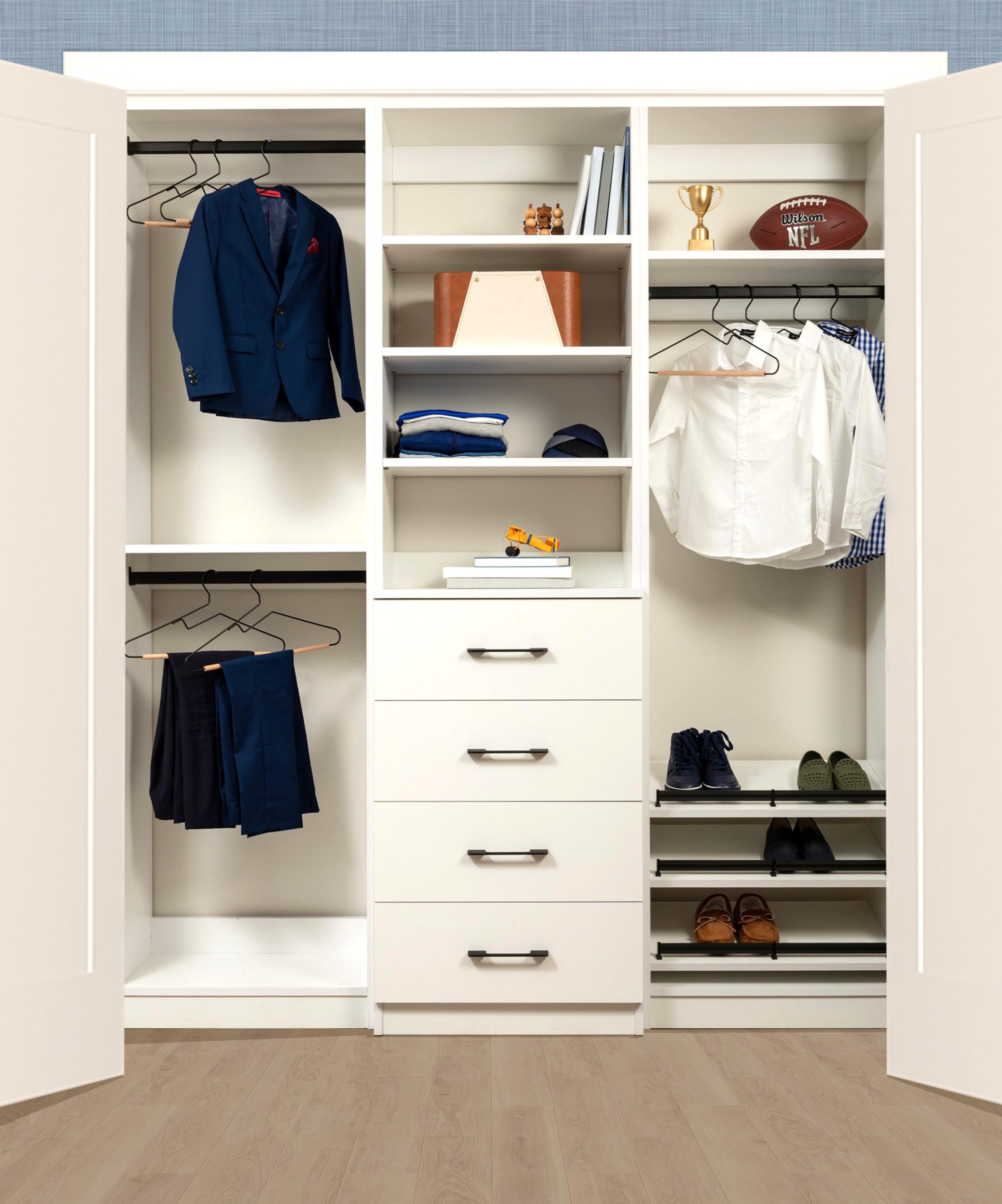 The layout of this boys’ reach-in closet makes keeping his clothing neat easy. Check out Seleqt’s initial rendering of the closet, bringing Mom’s ideas alive!