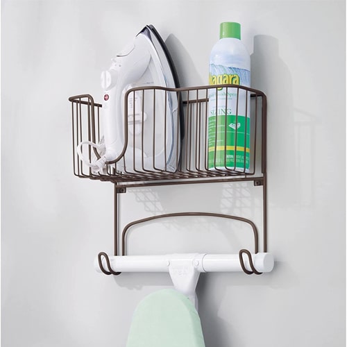 As for an ironing board, I like this one and I also have this gadget that helps store the ironing board in a neat way.