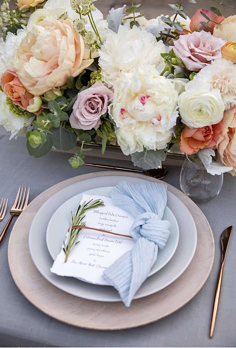“The wooden chargers and rustic ashy table bring the garden charm, but it’s elevated with lush, vibrant floral, and elegant flatware making it appropriate for a holiday as special as Shavuot,” says Adele.