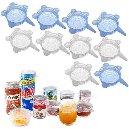 These are universal lids that can work with any bowl. They’re silicone, stretchy, and easy to clean. And they’re available in sizes that work for most little bowls.