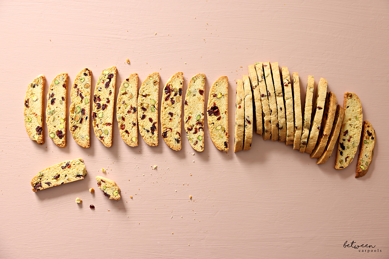 This recipe is brought to you thanks to my father. I was over at my parents’ house shmoozing one evening when my father asked if I had ever tried my sister’s biscotti. She had recently made them a batch and he couldn’t stop raving. He said I must get the recipe from her to post on Between Carpools. Gotta listen to my father, so that’s what I did!