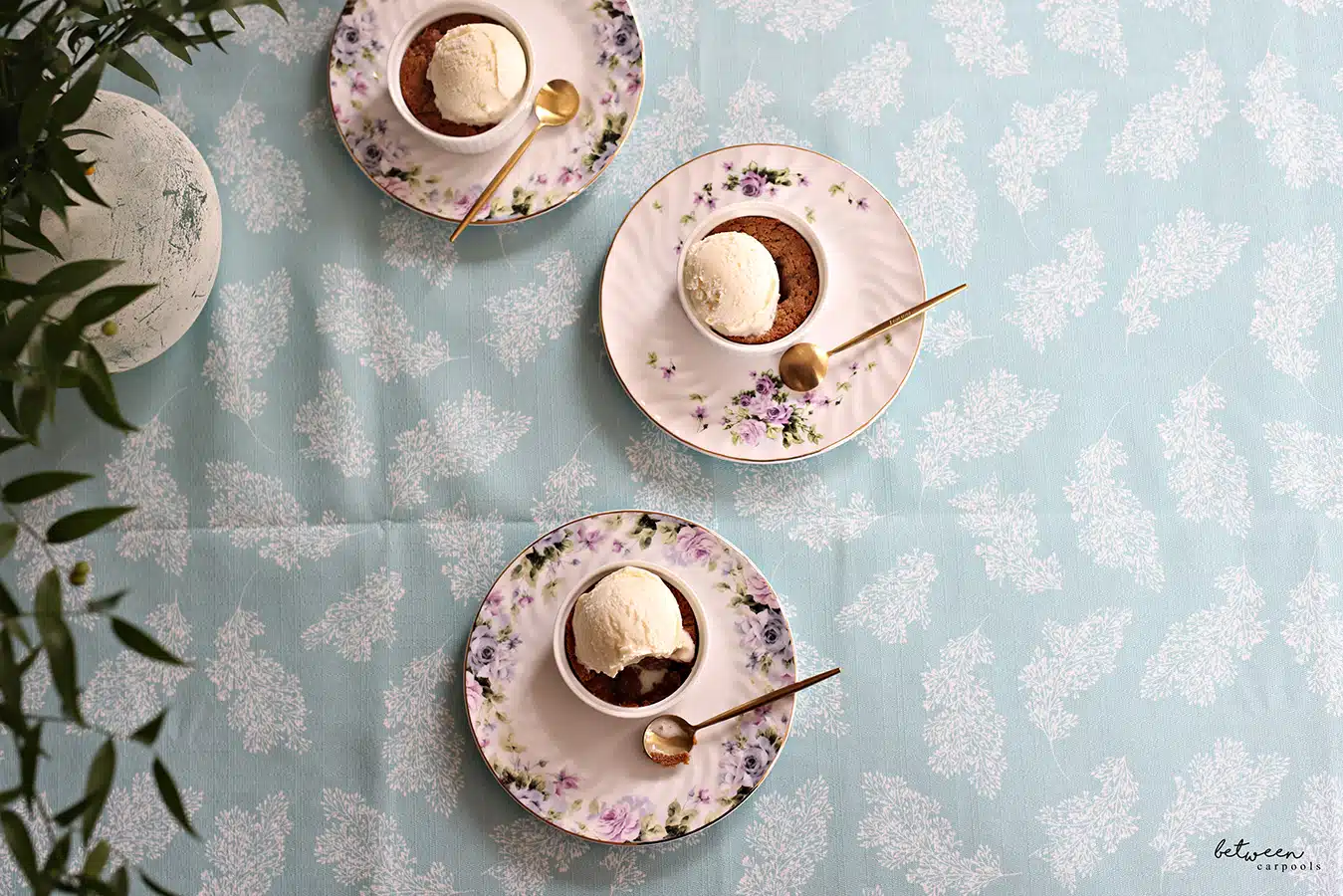 You don’t need new recipes. All you need is a new serving dish. Mix any 9×13 in a bowl, add it to a pretty round pan, and wa-la! You have a beautifully presented dessert. No one will realize that you didn’t take out the mixer. (P.S. If you love this tablecloth, it’s from Loom and Table.)