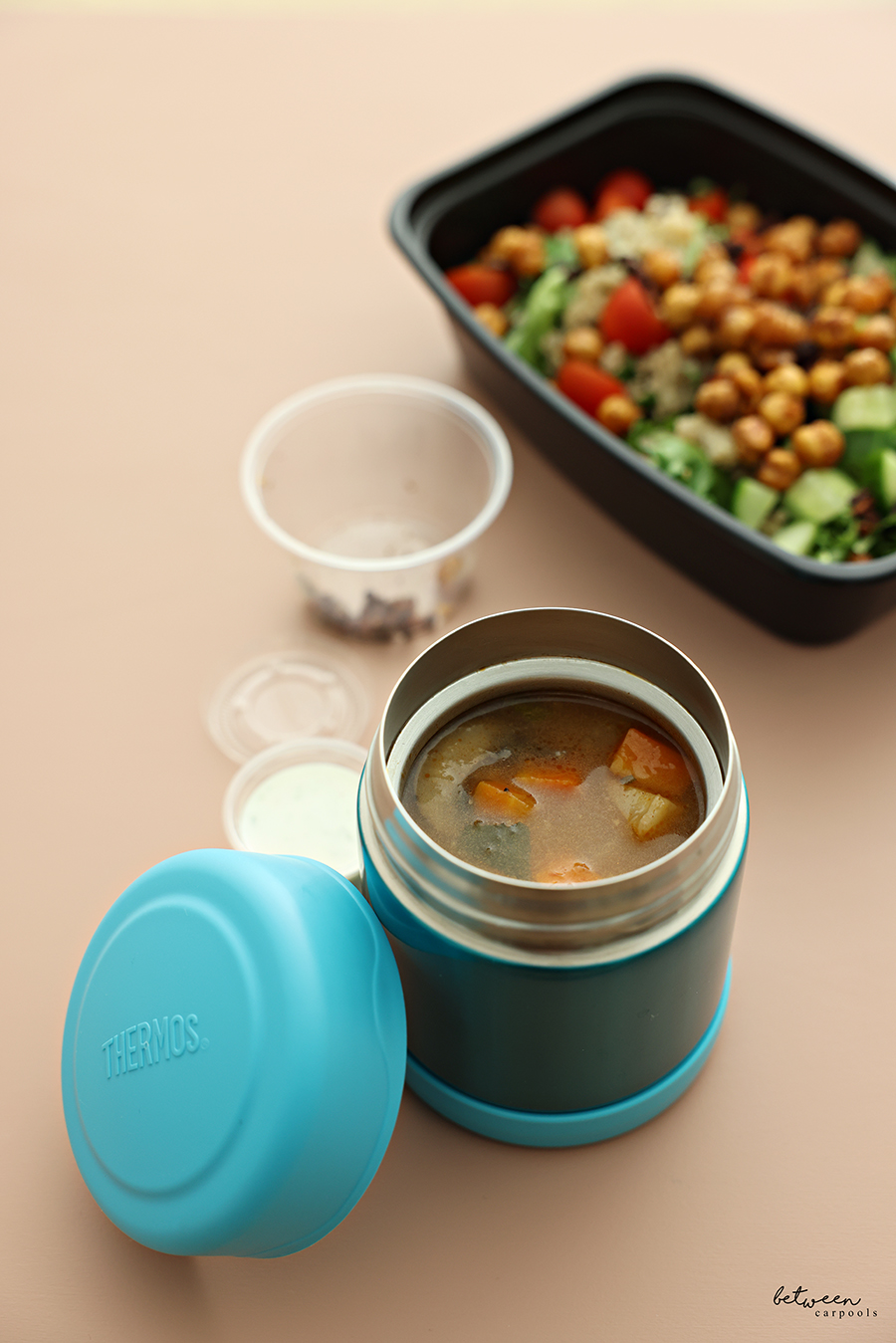 With the right thermos, hot foods also work well! Your favorite soups and even sauces (pour over pasta or rice) will store well in a thermos.