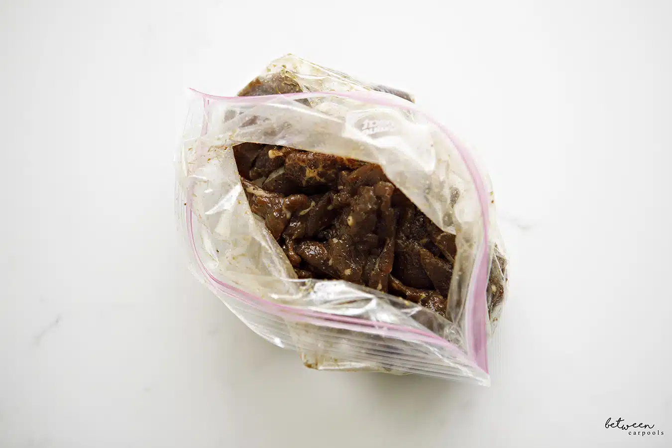 - Combine all ingredients but the meat in a large Ziplock bag. Then add meat, making sure the meat is fully coated with the marinade.