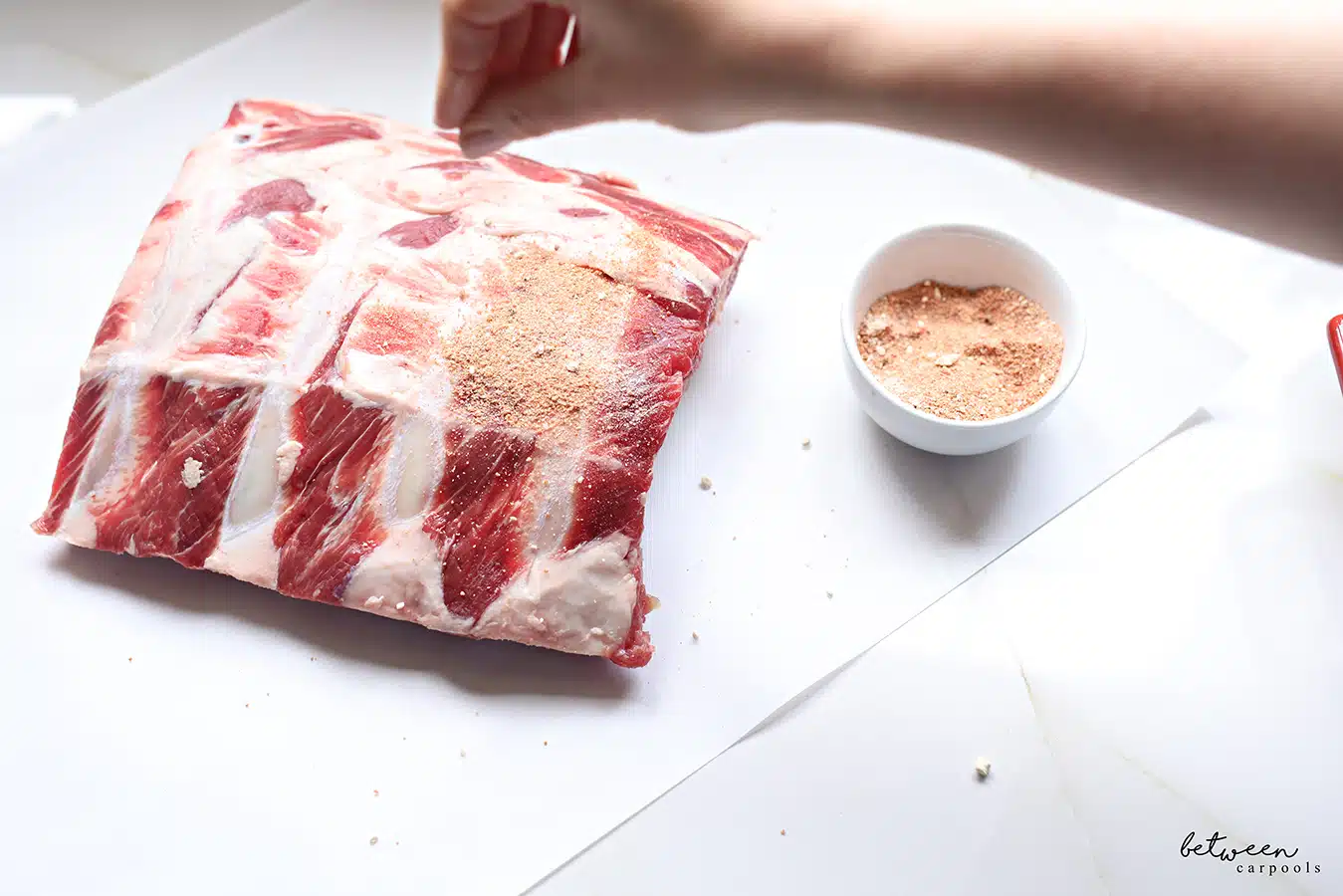 I’ve been making the recipe from T Fusion forever, but since then, I’ve wanted to have more versions of back ribs in the repertoire, and easier ones wouldn’t hurt either! This one features a spice rub that uses ingredients that you already have in the spice drawer (well, you better have smoked paprika if you want to be my friend). (A note on my spice drawer: I have since moved my spices to a bigger drawer and have added prettier labels. But I still recommend storing spices in a drawer and I still love the same spice containers. We really need to get Esti to take a pretty photo for us.)