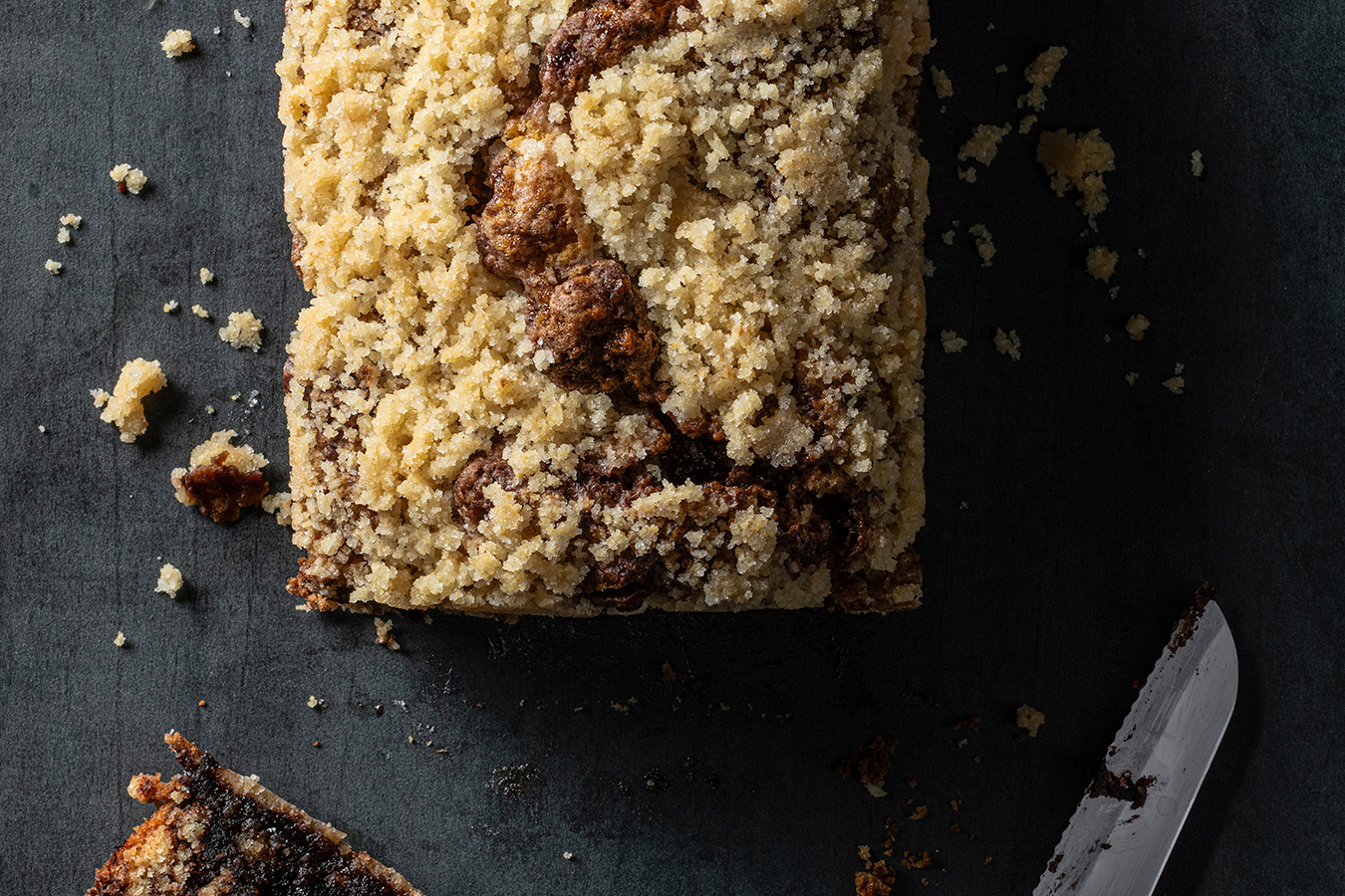 - Pour one-quarter of the babka batter over crumbs in each loaf pan. Pour one-quarter of the babka filling over the batter in each pan. Use a knife to cut through the batter and marbleize the filling. Pour remaining batter over the marbleized batter in each pan, dividing it evenly. Pour remaining babka filling evenly over the batter. Top with remaining streusel.