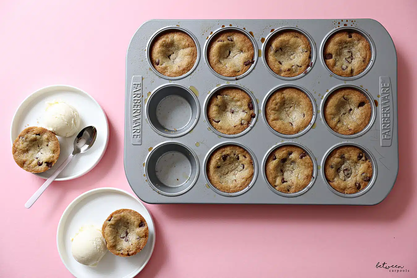 - Bake for 15 minutes. Allow to cool for a few minutes and remove from the muffin pan using a knife to pull the cookies out, if needed.
