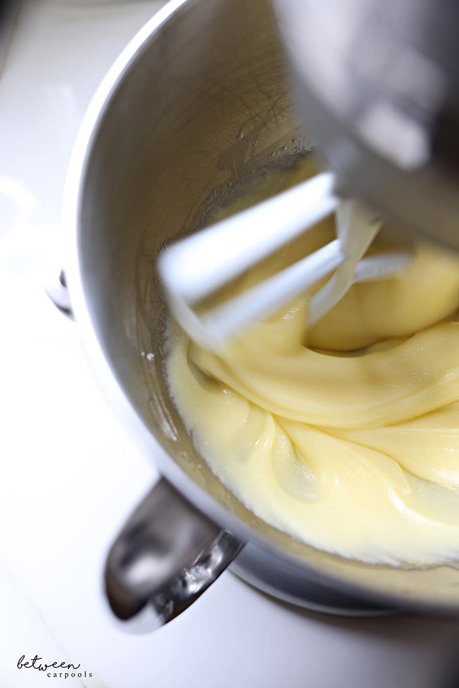 - Add flour, baking powder, salt, orange juice, orange zest, lemon juice, and vanilla. Mix until combined.