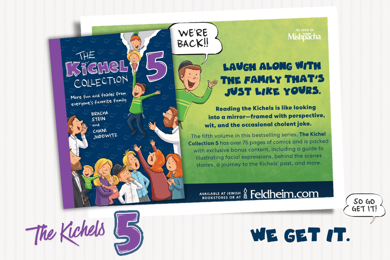 Laugh along with the Kichels—the family that’s just like yours. Reading the Kichels is like looking into a mirror—framed with perspective, wit, and the occasional cholent joke.