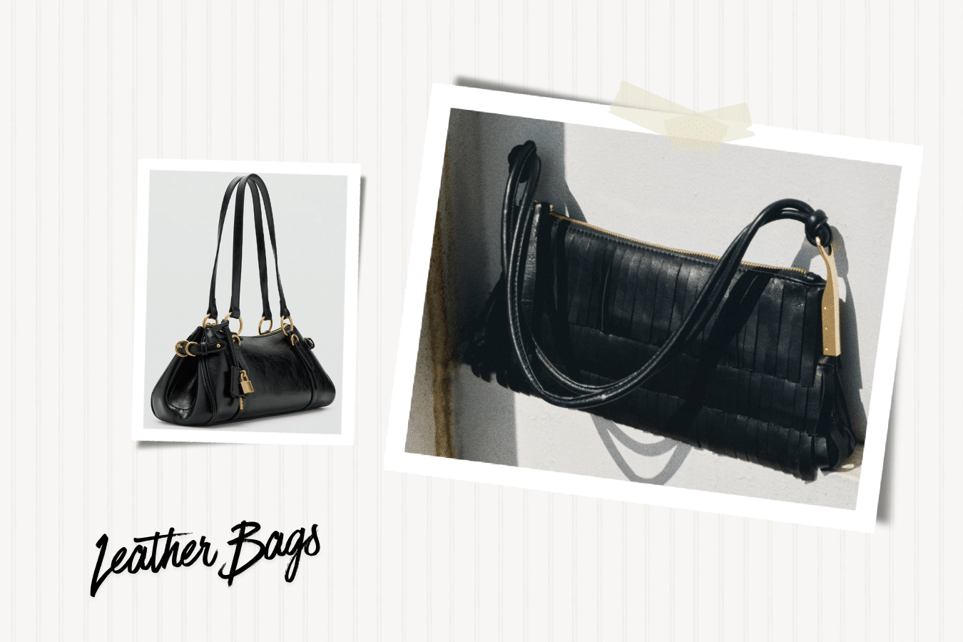 Leather Shoulder Bag with Fringes + Bowling Bag with Charm